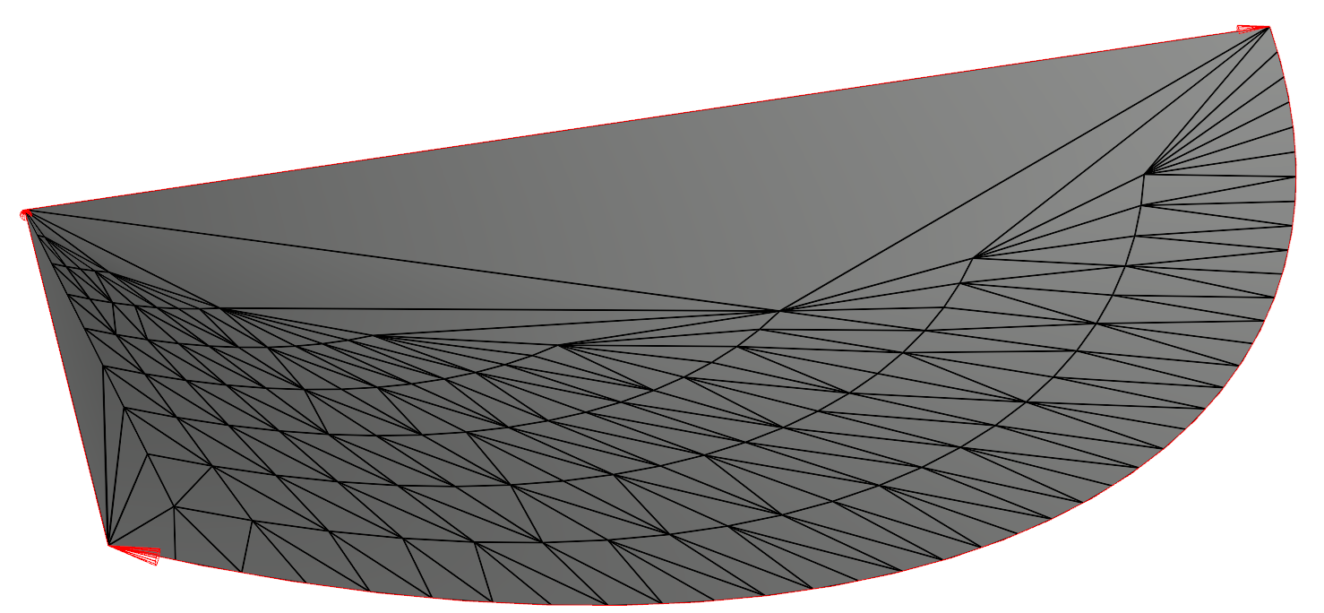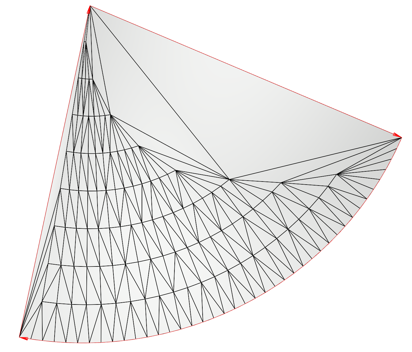 I'm trying to make a conical surface bounded by two lines and a circular arc. Here is a sample code
