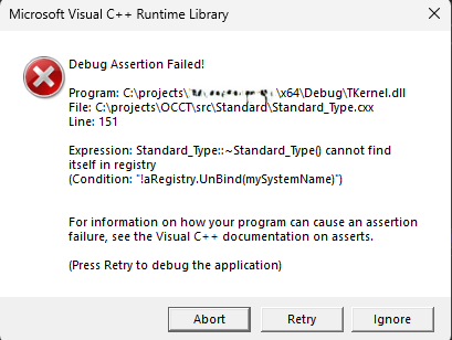 Standard_ASSERT(!aRegistry.UnBind(mySystemName), "Standard_Type::~Standard_Type() cannot find itself in registry",);