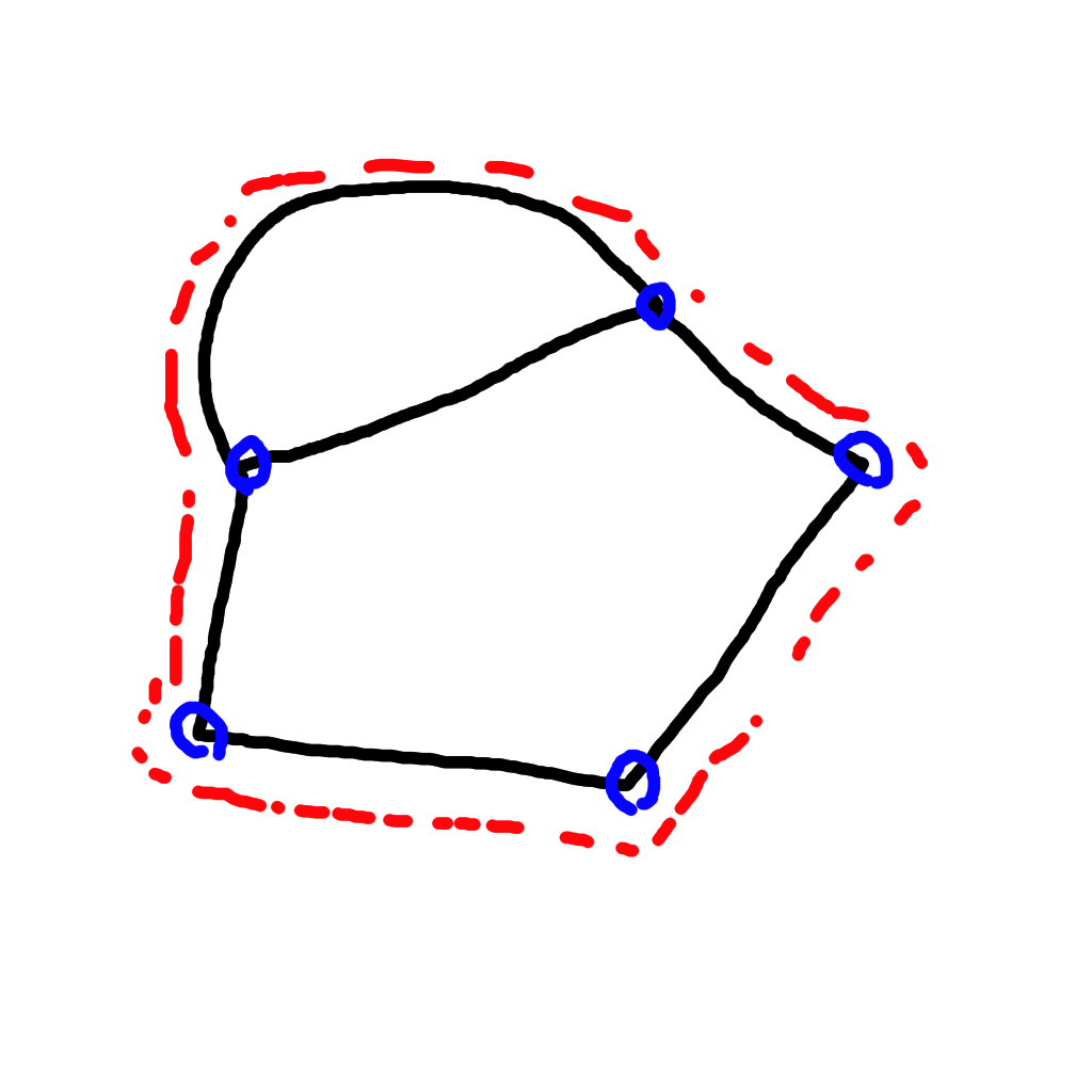 Ah I see. Since the intersections are removed there is no longer a need to worry about the exact geometry of the edges? I guess there is one issue however: what about duplicate links (different TopoDS_Edge types sharing the same endpoints) in this case, would the algorithm be able to determine which edge represents the outer boundary? From what I can see it would not? (see attached)