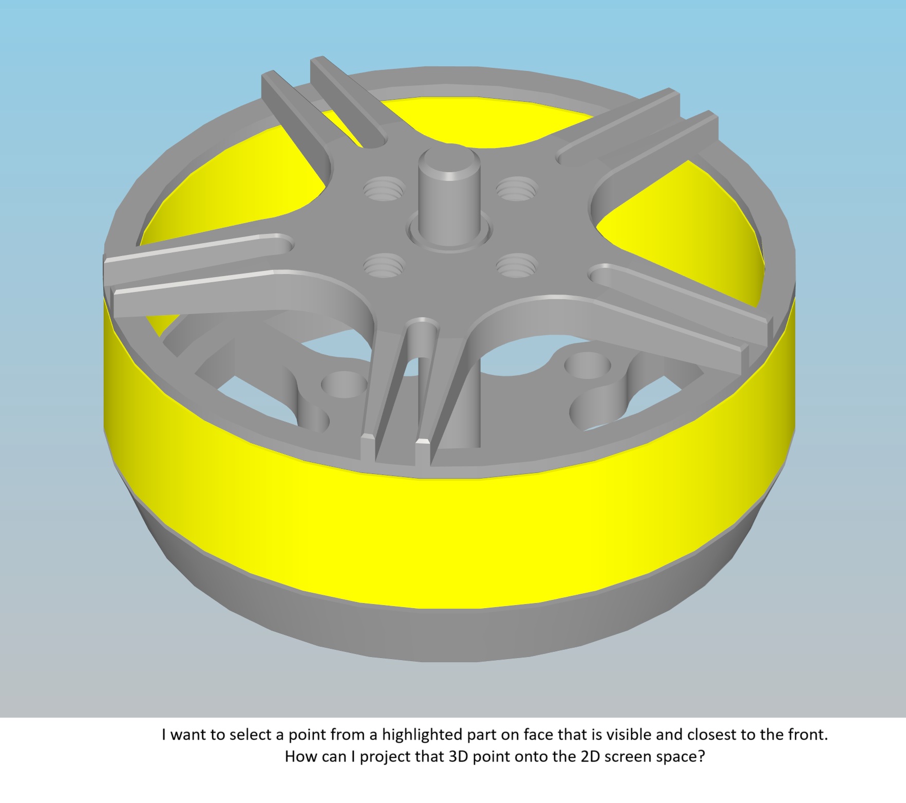 - I want to pick a point on the face of this selected part that is actually visible to the camera (i.e., not occluded by the first part).
