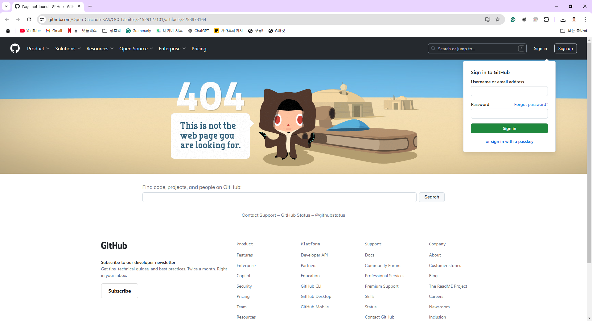 Whenever I try to access the first website, it leads me to here (https://github.com/Open-Cascade-SAS/OCCT/suites/31529127101/artifacts/22...) with an error code of 404, which says that the page is not found.