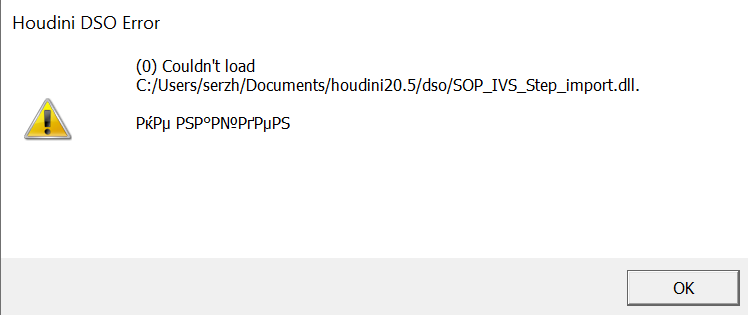As soon as houdini sees my dll, a message pops up, in which it is not possible to understand what the program does not like (picture in attached images).