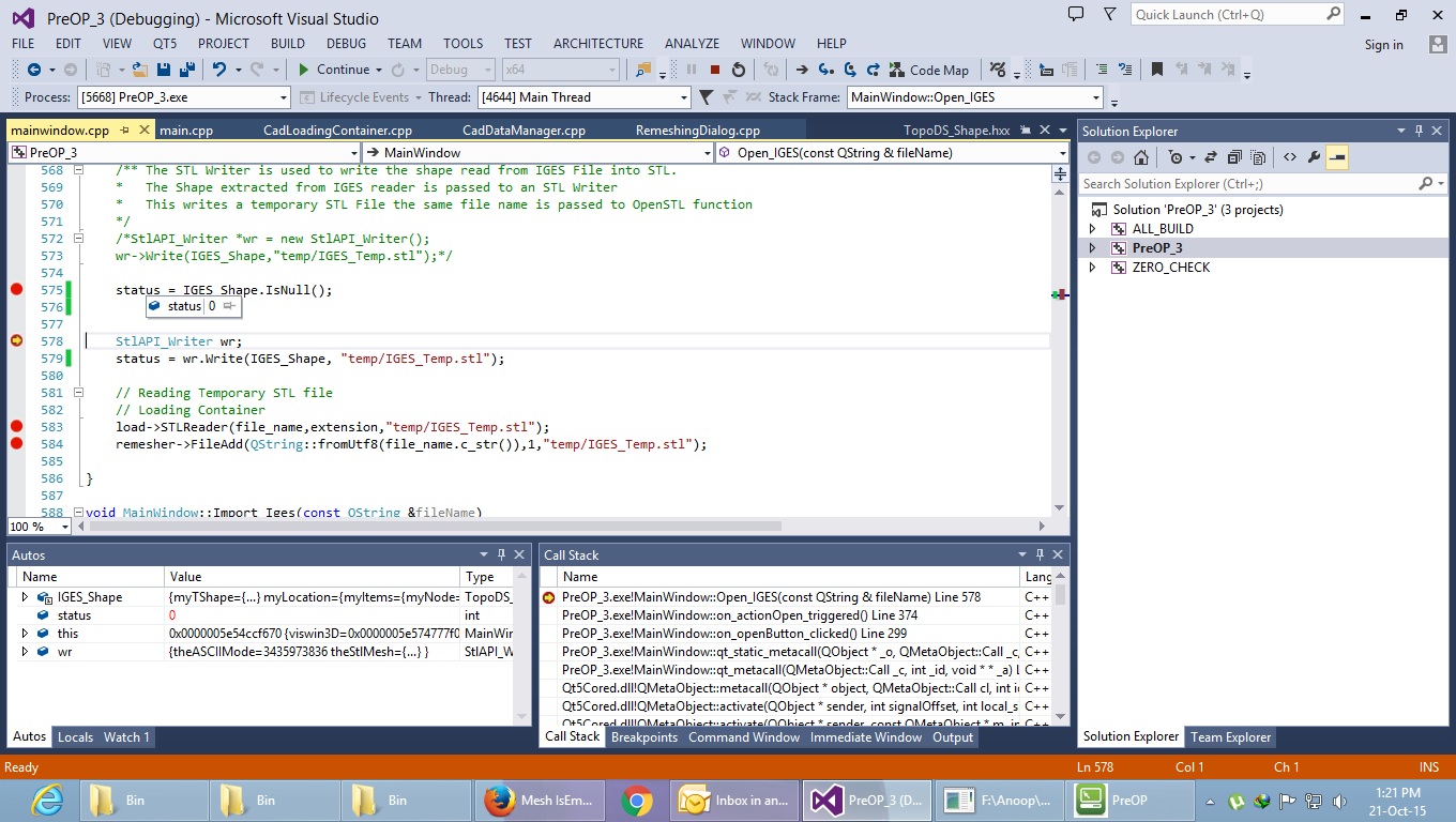 Right now i am facing a weird issue. I havent faced this earlier, I have written a code to convert from IGES/IGS file to STL file. When i was using OCC-6.6.0 this code was working perfectly, Due to some reasons i had to migrate to Visual studio 2013 so i downloaded OCC 6.9.1, Now i am facing with weird issue which i am not able to resolve. I have attached screenshot while i debug you can have a look at it. The following is my code