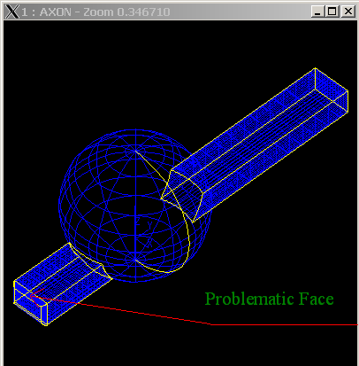 | Description | Selection of a face generated by Fillet function (see the attached picture) leads to infinite loop inside Naming component. Naming tries to find neighbors via Filter. It seems that the criteria to stop is incorrect. Script for the problem reproducing. ------------------------------------ pload FULL erase NewDocument D MDTV-Standard isos 12 0000001 - create Box using short-cut NewCommand D AddDriver D Box; set B1 [AddBox D 130 140 150]; ComputeFun D $B1:1; GetShape D $B1:1:2 Box1; 0000002 - create a sphere AddDriver D Sph Attach PTxyz PTALine Cut Fuse Fillet NewCommand D explode Box1 V set SPnt1 [AttachShape D Box1_1 ${B1} ${B1} 0]; ## set attachment set Sph1 [AddSphere D $SPnt1 250] ComputeFun D $Sph1:1 GetShape D $Sph1:1:2 Sp1 #3 NewCommand D set B2 [AddBox D 150 1400 100]; ## add box ComputeFun D $B2:1; ## compute box2 function GetShape D $B2:1:2 Box2; erase Box1 #4 NewCommand D set FTr2 [PTranslateDXYZ D $B2 -70 -500 0] ComputeFun D $FTr2 GetShape D $B2:2:2 Box2 #5 Fuse sphere with Box2 NewCommand D set FS1 [AddFuse D $Sph1 $B2] ComputeFun D $FS1 GetShape D $FS1:2 Sp1 #6 make fillet explode Sp1 F set Bas1 [AttachShape D Sp1_1 ${Sph1} ${Sph1} 0]; set Fill [AddFillet D $Sph1 15 $Bas1 0] ComputeFun D $Fill GetShape D $Fill:2 S #6 test selection NewCommand D explode S F set SF2 [AttachShape D S_2 ${Sph1} ${Sph1} 0]; | ||||