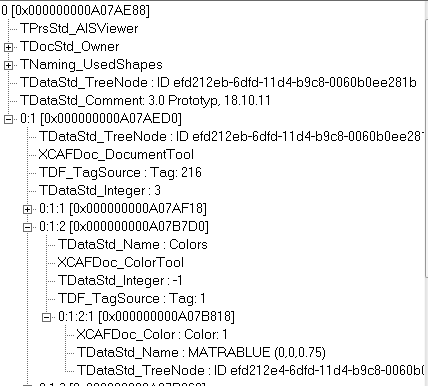 Sorry for lacking precision ;) I meant the TDF_Label (0x000000000a00b818) containing the XCAFDoc_Color attribute. Unfortunately, I was not able to create a reproducer... |