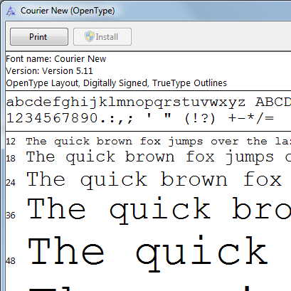 | Steps To Reproduce | pload ALL vinit vsetcolorbg 255 255 255 vdrawtext t "The quick brown fox jumps over the lazy dog" -font Courier -height 12 -color 0 0 0 | ||||