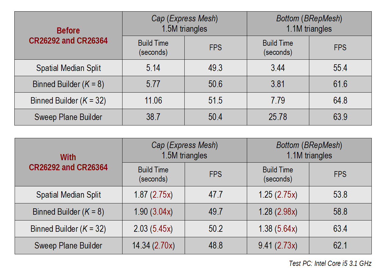 | Description | BVH Binnded Builder has some inefficiencies which need to be improved. For example, bin information should be computed in advance and cached instead of recomputing it during evaluation of split plane. | ||||
