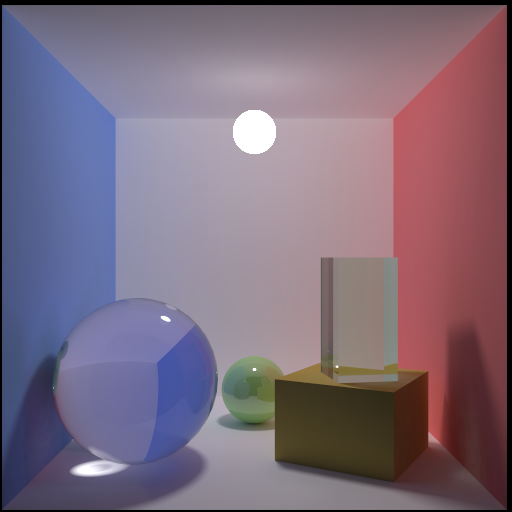 | Description | Current version of path tracing does not handle light sources correctly (e.g. implicit light paths), and thus some effects are not computed (e.g. caustics). Another point is relatively low performance, which can be increased using such techniques as coherent path tracing. | ||||