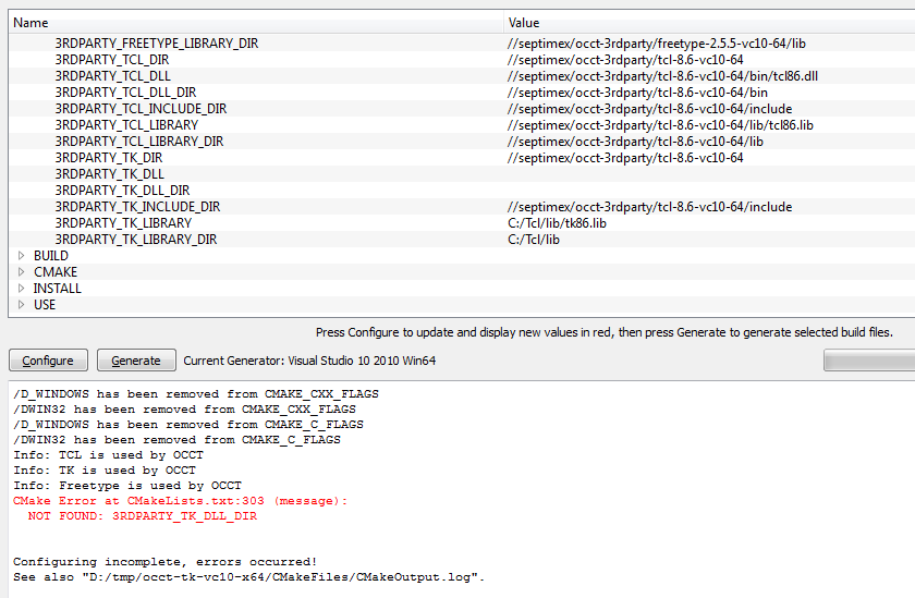dear ski, could you research the problem appeared when CMake conf process had been performed? A corresponding screenshot is attached. |