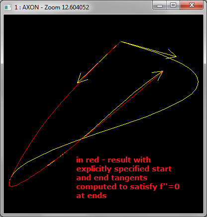 Dear Roman, 1. AFAIU, you computed q1 using Golovanov's 2011 formula and qn-1 using Eval::Lagrange(). Is there a reason for this inconsistency ? Yes, but it used for testing. In result version there will be only Golovanov's approach for f''= 0 condition. The main reason for it - minimal number of points. For Eval::Lagrange() will require at least 4 points and Golovanov formulas will require only 3 points. 2. Could you avoid code duplication between computing first and last point and between 3D and 2D cases ? All the four versions could be merged into a single template-based implementation. Below is an excerpt from our code to give you an idea how this might look like. Eval::Lagrange approach is not symmetric. So it is not easy to merge tangent computations. 3-4 I will take into account these remarks. |