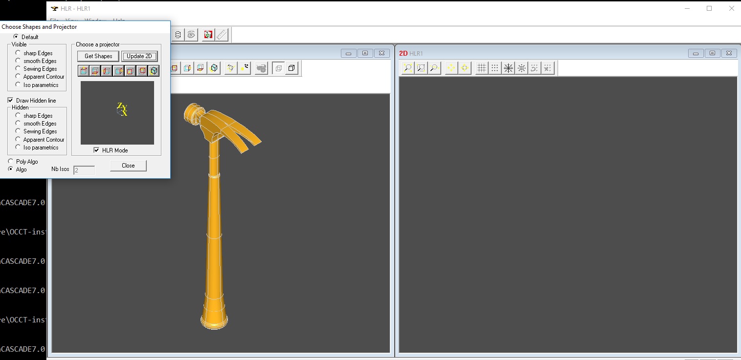 | Steps To Reproduce | • Import any shape • Run HLR dialog • Press Get Shapes button • Switch algorithm from Poly Algo to Algo • Press Update 2D button | ||||