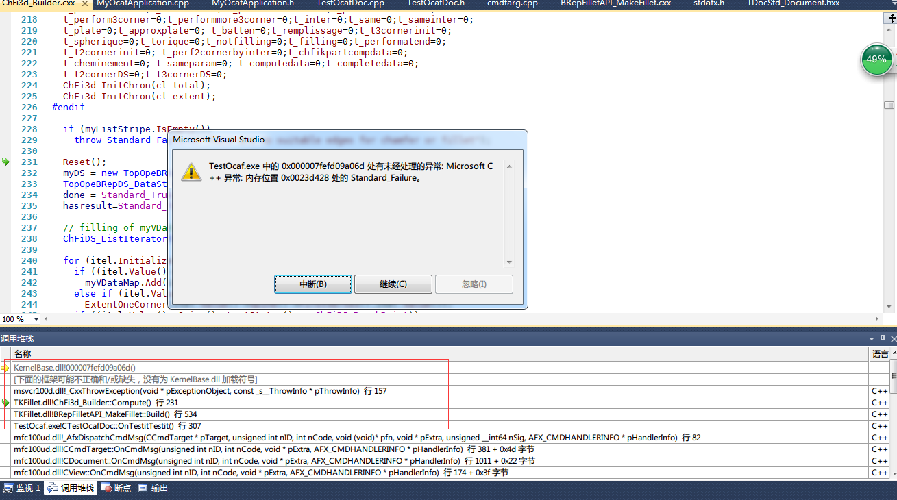 | Description | E:\libs\occt\occt_master\samples\ocafsamples\TNaming_Sample.cxx I build a SDI MFC application to test TNaming_Sample.cxx's sample function. It produced a exception at the fillet line(line-214). | ||||