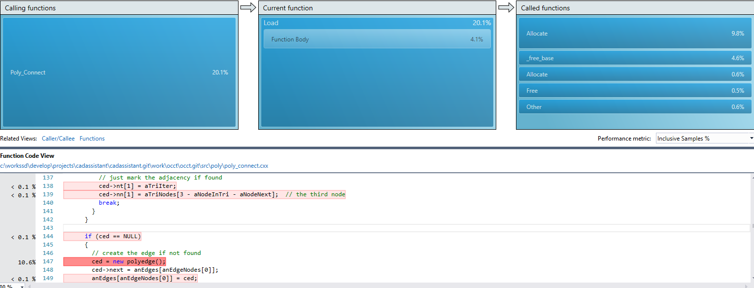 | Description | Poly_Connect initialization takes considerable time on small allocations / deallocations which can be optimized by using NCollection_IncAllocator. | ||||
