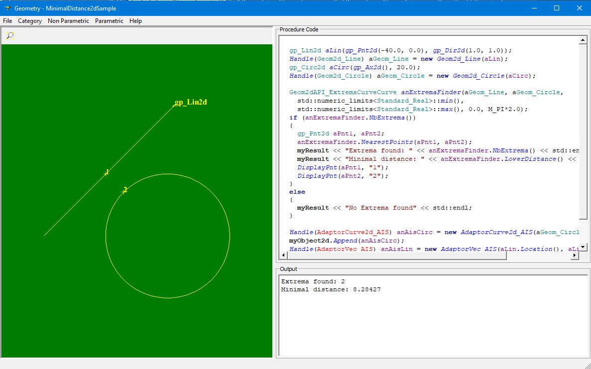 Some preliminary remarks about the implemented code. 1. Hard coded paths are not acceptable at all as in the building environment as in the code of the application. 2. Start of the application has to be improved because current one confuses the user: on launch without parameters it exits nothing say about which parameter is expected, on launch with wrong parameter it informs about correct parameters but exits anyway. Using of a console interactive menu in case if parameter is not defined or it is wrong will be more user friendly. 3. The application is a tutorial which explains using of OCCT library objects. Using in its examples redefined classes from internal structure of the application is not correct because user doesn't have any information about these classes. It is better to use standard AIS objects (not redefined) for visualization of examples results. |