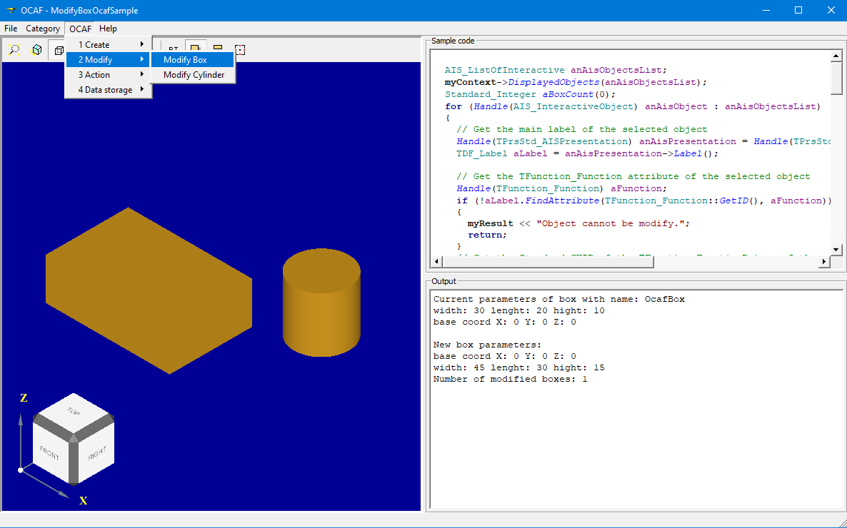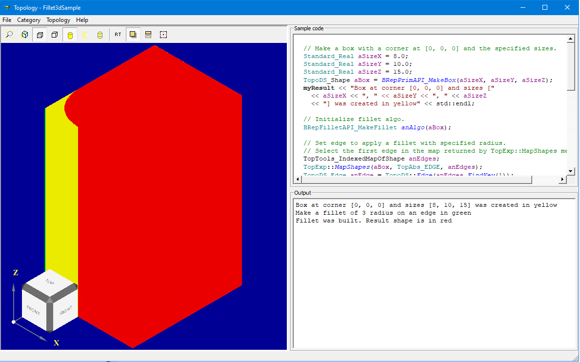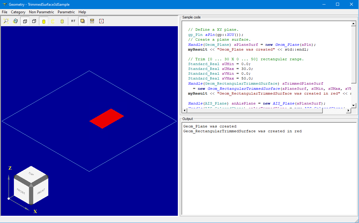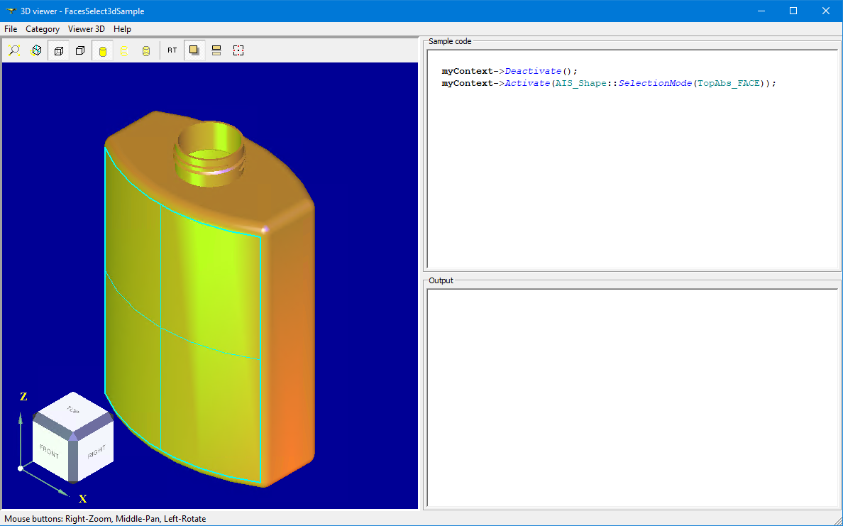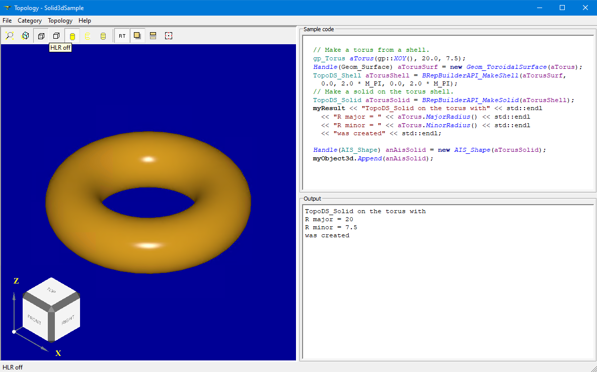 I don't see neither View Cube nor Trihedron on screenshots with 3D Viewer, so that user will be disoriented in 3D space. It would be nice showing AIS_ViewCube in View corner in these samples. View Cube will also allow removing redundant buttons from View toolbar. |
