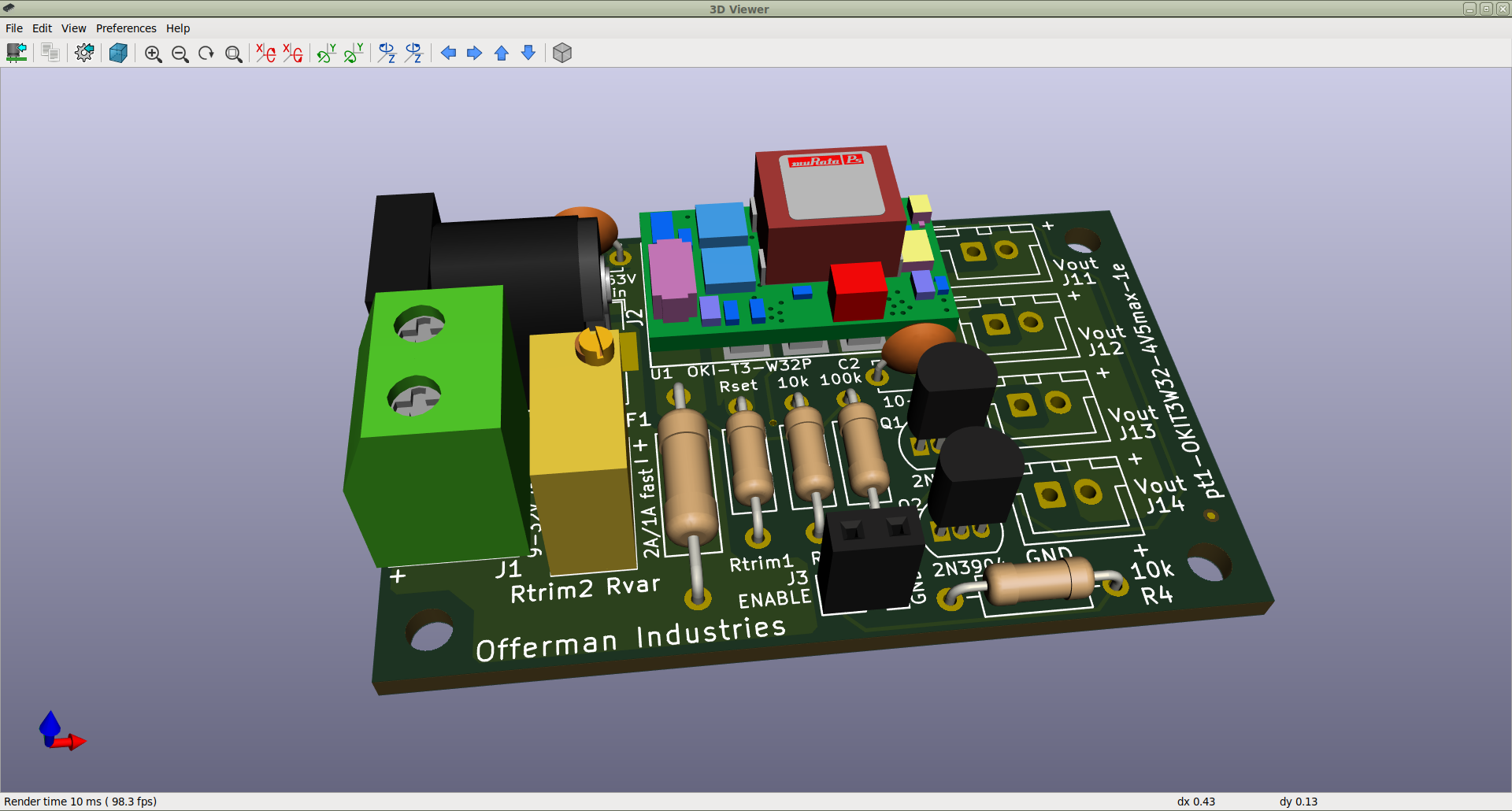 | Description | Opening the 3D view of a layout that worked fine in KiCad version v5.0.2 shows a one of the models in grey only on KiCad v.5.1.6. This specific model (attached) was created by and downloaded from SnapEDA. All the other components (from the KiCad 3D library) are having no issues at all as far as I can see. The issue was initially reported here: https://gitlab.com/kicad/code/kicad/-/issues/5163 Turns out that FreeCAD (versions 0.19-16540 and 0.18-16110 AppImages) has the same problem with this file, so turning to OpenCascade now. | ||||