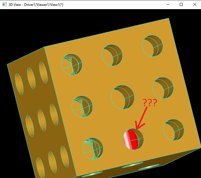 | Description | Run the script below.pload ALL restore part.brep part restore tool.brep tool checkshape part checkshape tool bcut res part tool checkshape res vinit vdisplay res -dispMode 1; vfit vaspects res -setBackFaceColor RED 1.png Bug: after the 'cut' operation, we have a valid shape (checked using checkshape). But if you look through the viewer, the shape looks not valid. Possible causes: incorrect rendering, incorrect validation, incorrect boolean operation. Note: the input is valid. Note: please, after finding out the reason, change the category of the task. | ||||