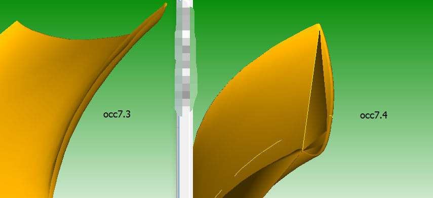 > I upgrade occ to version 7.5,I found a strange thing. You description points to OCCT 7.3.0 vs OCCT 7.5.0, but your screenshot mentions OCCT 7.4.0. Which version you have actually tried? |