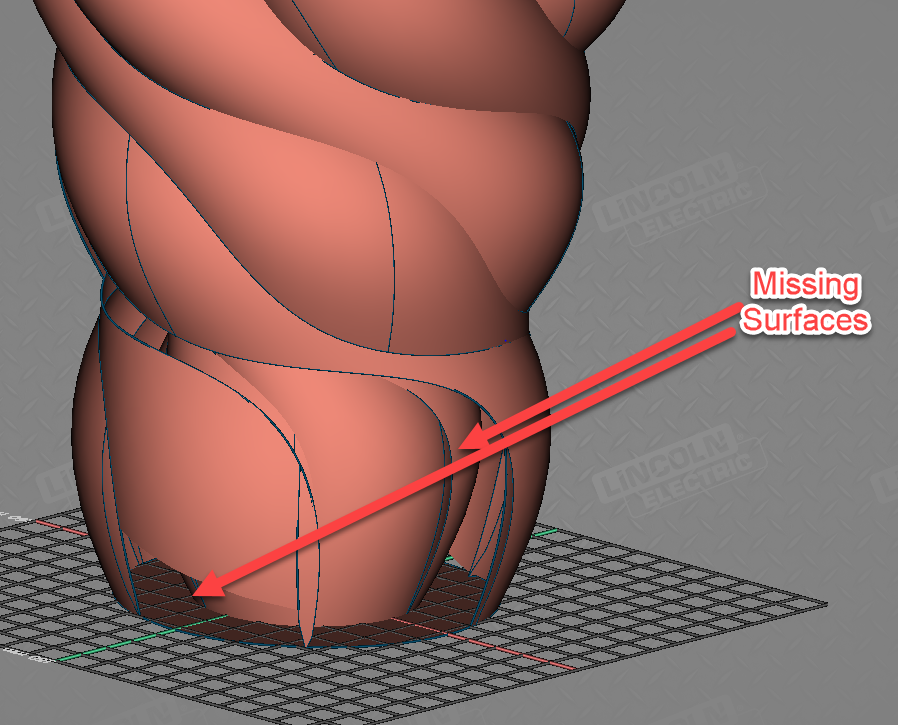 Hello @bogdan_138692, the shape contains some issues that cause triangulation look bad. checkshape reports the following problems: On Shape faulty_1 : BRepCheck_SelfIntersectingWire On Shape faulty_2 : BRepCheck_UnorientableShape Shape faulty_1 on shape faulty_2 : BRepCheck_SelfIntersectingWire On Shape faulty_3 : BRepCheck_SelfIntersectingWire On Shape faulty_4 : BRepCheck_UnorientableShape Shape faulty_3 on shape faulty_4 : BRepCheck_SelfIntersectingWire Faulty shapes in variables faulty_1 to faulty_4 Note that the issues reported either by checkshape or bopargcheck notify user about general problems that could cause further degeneracy in any algorithm, BRepMesh is not an exception. All these problems say that design in imperfect and should be fixed either manually, or using fixshape. Using fixshape like this: stepread Swirler.step a * fixshape r a_1 +i Gives the result pictured on the attached screenshot. Despite of nice looking result, there are some problems anyway: tricheck reports free nodes, which is practically thin holes along border of just some skipped nodes from initial discretization. Moreover, checkshape also says about the same problems reported before healing procedure. Like this, current issue is just a visual representation of hidden design problems existing in its parts and should be qualified as related to Shape Healing component. Swirler.png (75,416 bytes) |