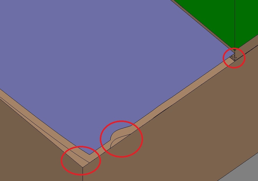 | Description | The attached file can be imported and features correct surfaces and spatial trimming loops. However parametric loops are wrong. See attached image for an example: _ the blue surface should be a rectangle, but the side on the left is eroded, making it curvy; _ additionally the side on the right gets that curious bump; _ the same happens to the underlying brown surface. | ||||
